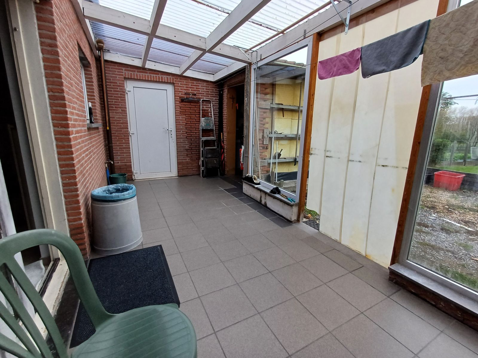 | Veranda | 12,57m2 | Overgangsruimte met toegang tot tuin, berging exterieur en eetruimte via schuifdeur. |