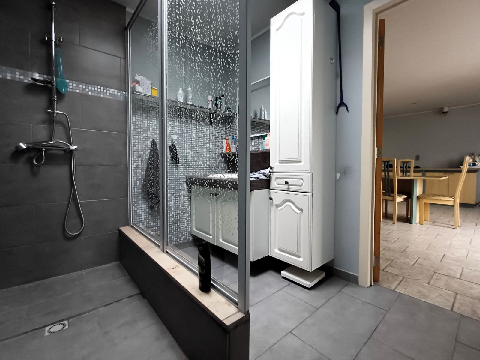 | Badkamer | 5,33m2 | Badkamer uitgerust met inloopdouche en spoelbak, gelegen naast de eetruimte en berging. |