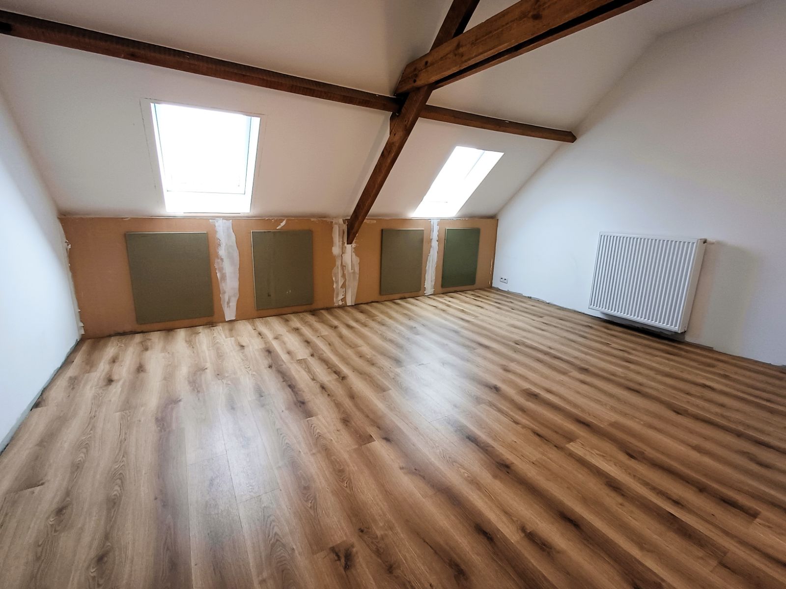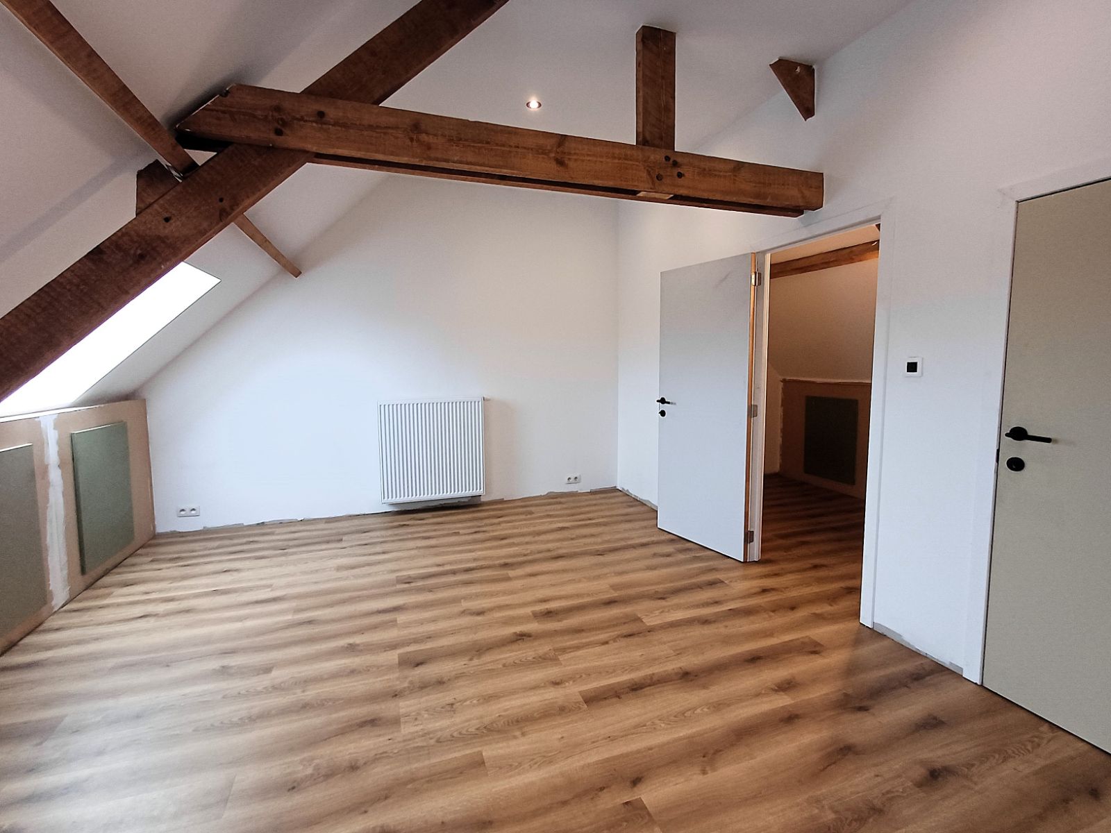 - Op de eerste verdieping vind je twee volwaardige slaapkamers en een apart toilet. De zolderverdieping is bereikbaar via een vaste trap en volledig afgewerkt, met voldoende ruimte voor een dressing, extra slaapkamer of hobbyruimte.