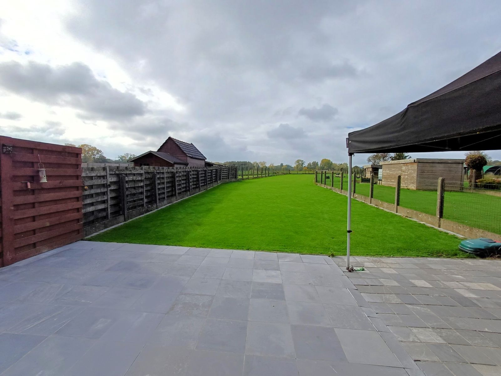Buiten geniet je van een ruime, groene tuin met een aangenaam terras, perfect om te ontspannen, te tuinieren of te genieten van het buitenleven.
