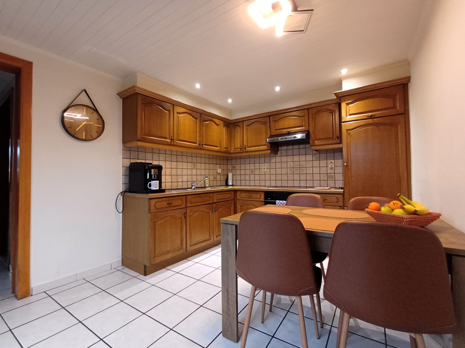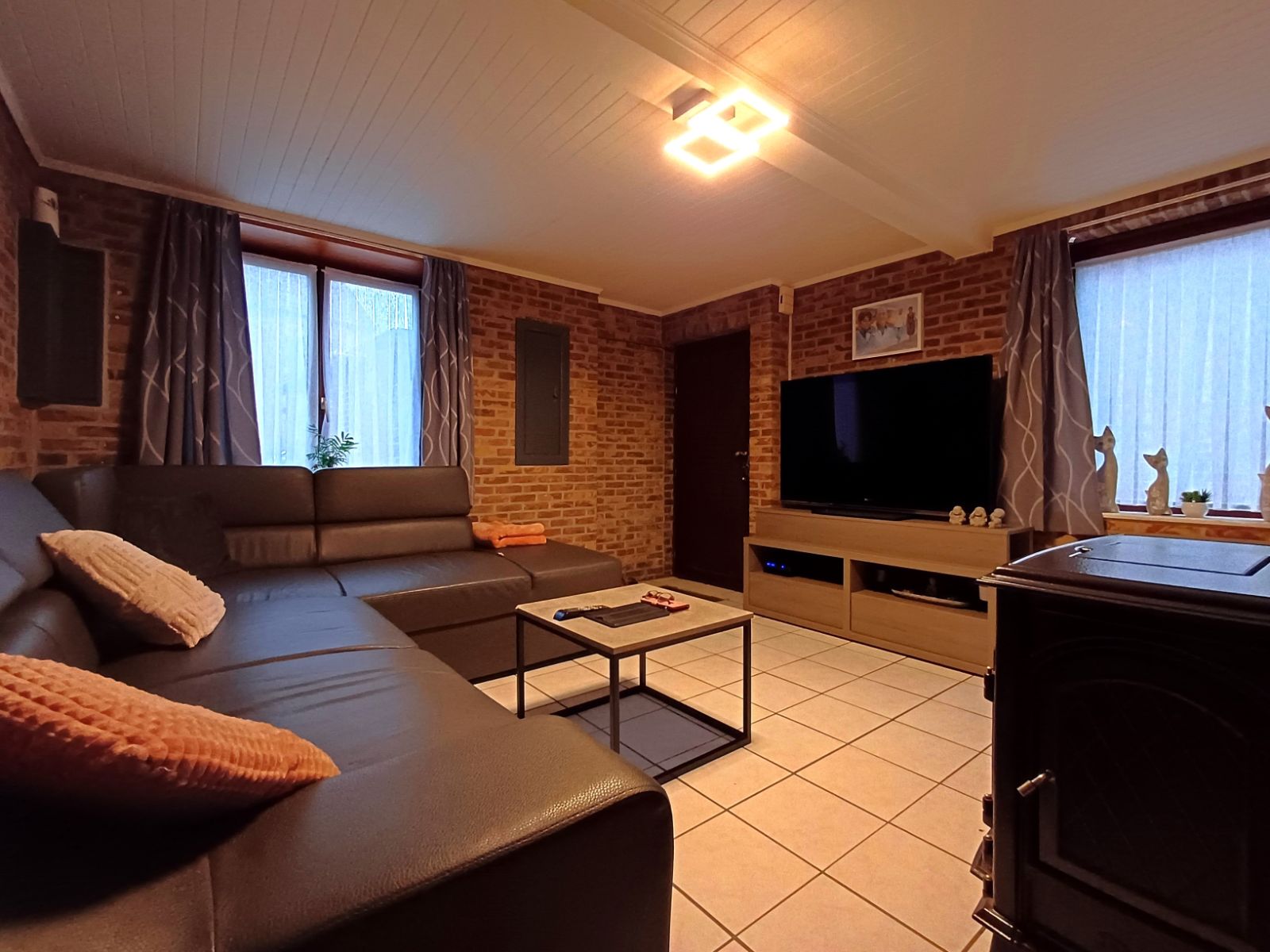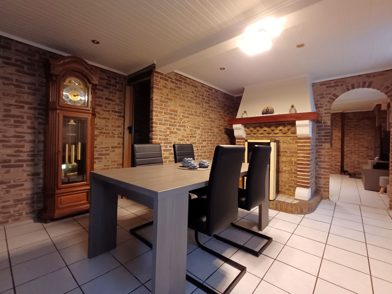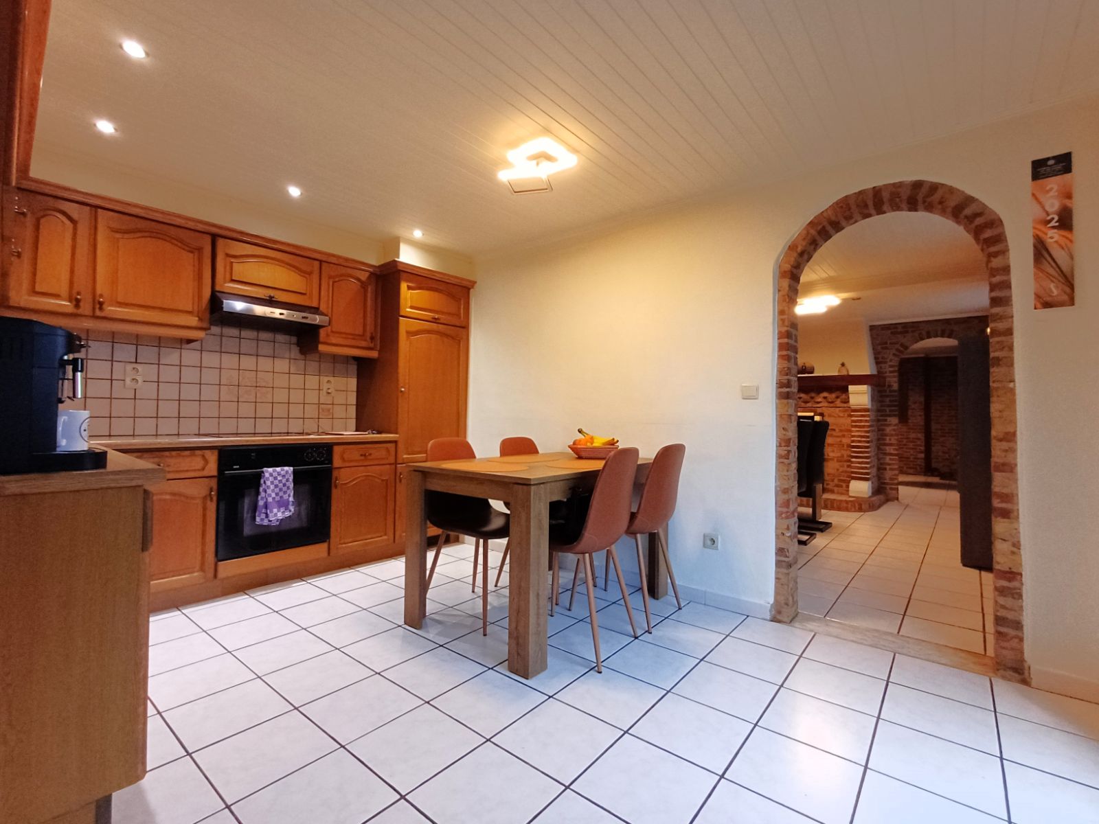 Bij het binnenkomen ontdekt u de knusse leefruimte met houtkachel, perfect om een intieme en huiselijke sfeer te creëren. Vanuit deze ruimte heeft u toegang tot de verdieping en tot de eetruimte, die ondanks het compacte karakter verrassend ruim aanvoelt. Hier bevindt zich ook de praktische compacte voorraadkelder. Aansluitend treft u de lichtrijke keuken, dankzij de dubbele deur die extra veel daglicht binnenbrengt.
