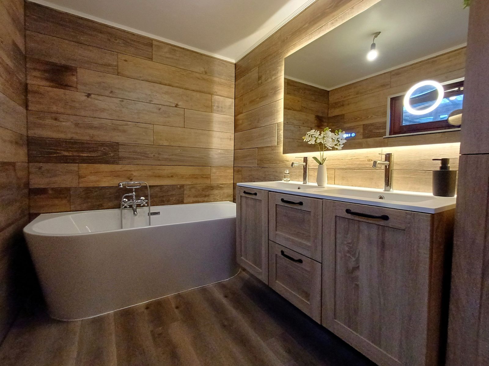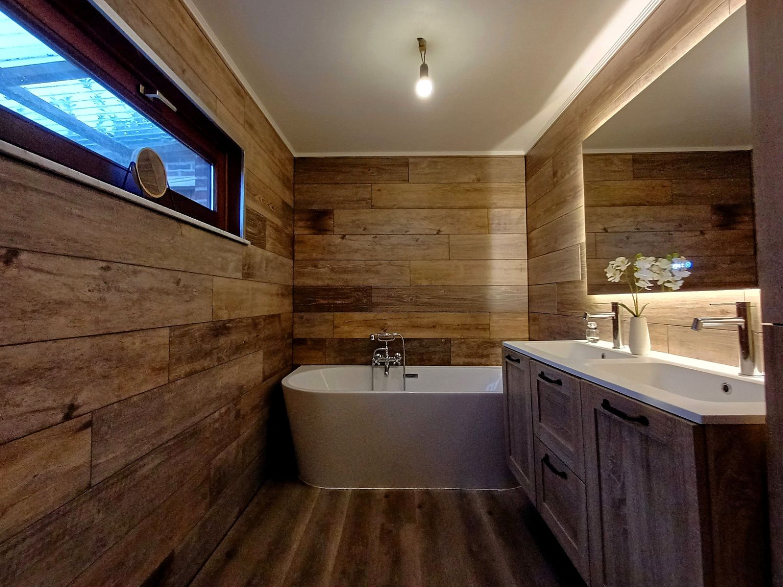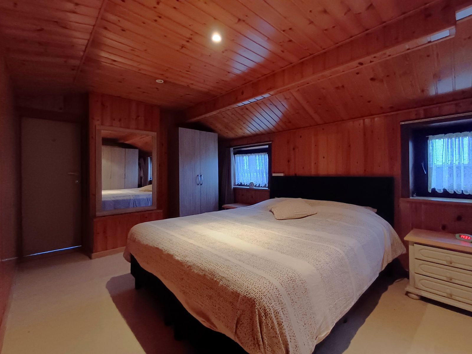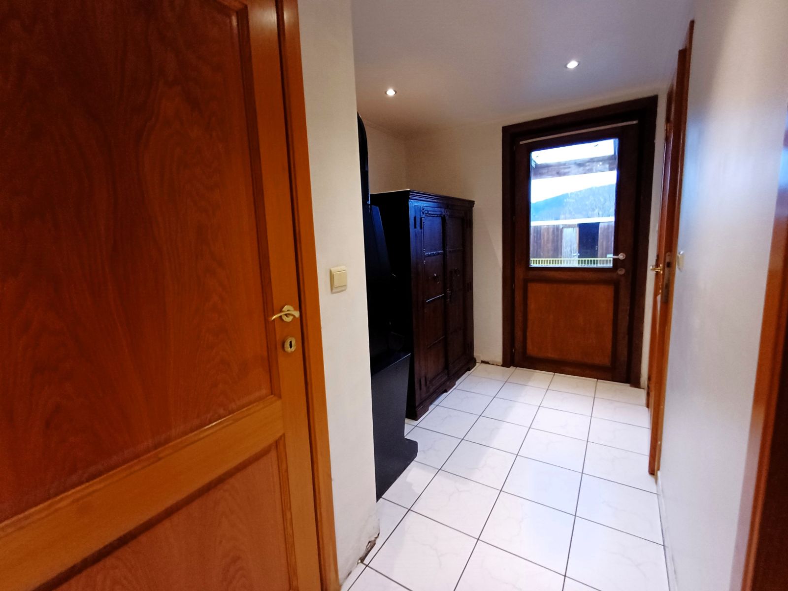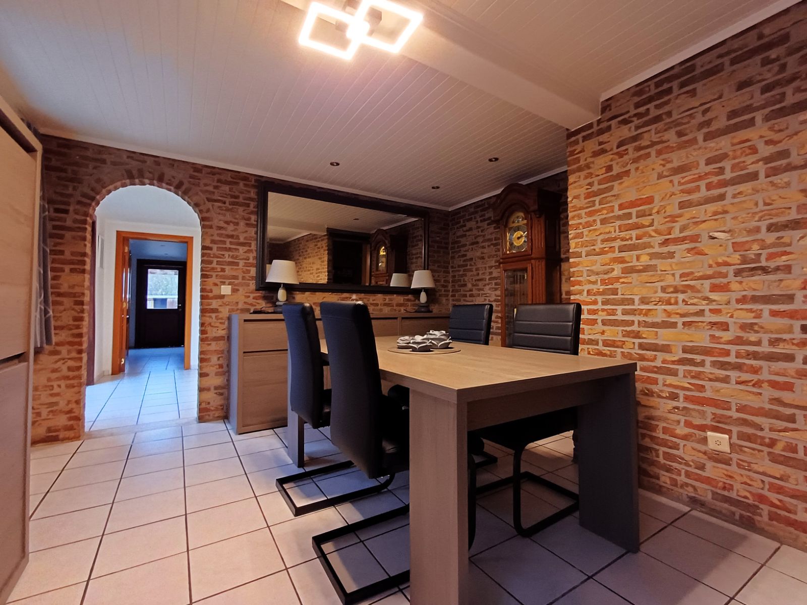 Bij het binnenkomen ontdekt u de knusse leefruimte met houtkachel, perfect om een intieme en huiselijke sfeer te creëren. Vanuit deze ruimte heeft u toegang tot de verdieping en tot de eetruimte, die ondanks het compacte karakter verrassend ruim aanvoelt. Hier bevindt zich ook de praktische compacte voorraadkelder. Aansluitend treft u de lichtrijke keuken, dankzij de dubbele deur die extra veel daglicht binnenbrengt.