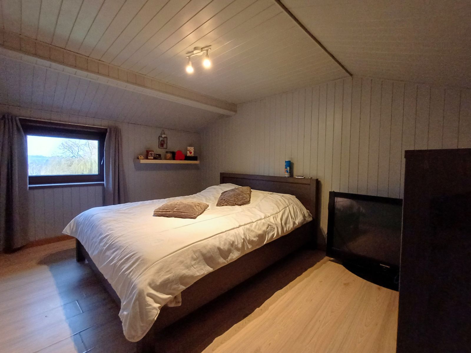 Op de eerste verdieping bevinden zich twee ruime slaapkamers, waarvan één beschikt over een extra ruimte die u naar wens kan inrichten als bureau, dressing, ontspanningshoek of zelfs een bijkomende slaapkamer.