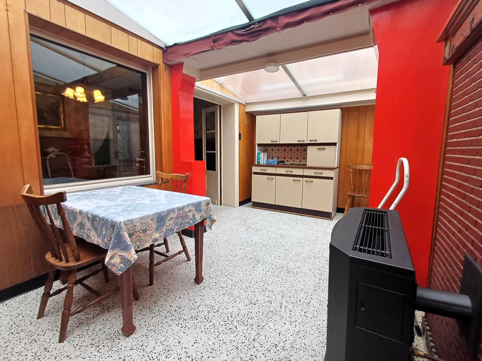 Het pand wordt verwarmd door gaskachels op het gelijkvloers en is deels uitgerust met PVC dubbele beglazing in het bureel en slaapkamer 1. Daarnaast beschikt het over karaktervolle houten gewelven.