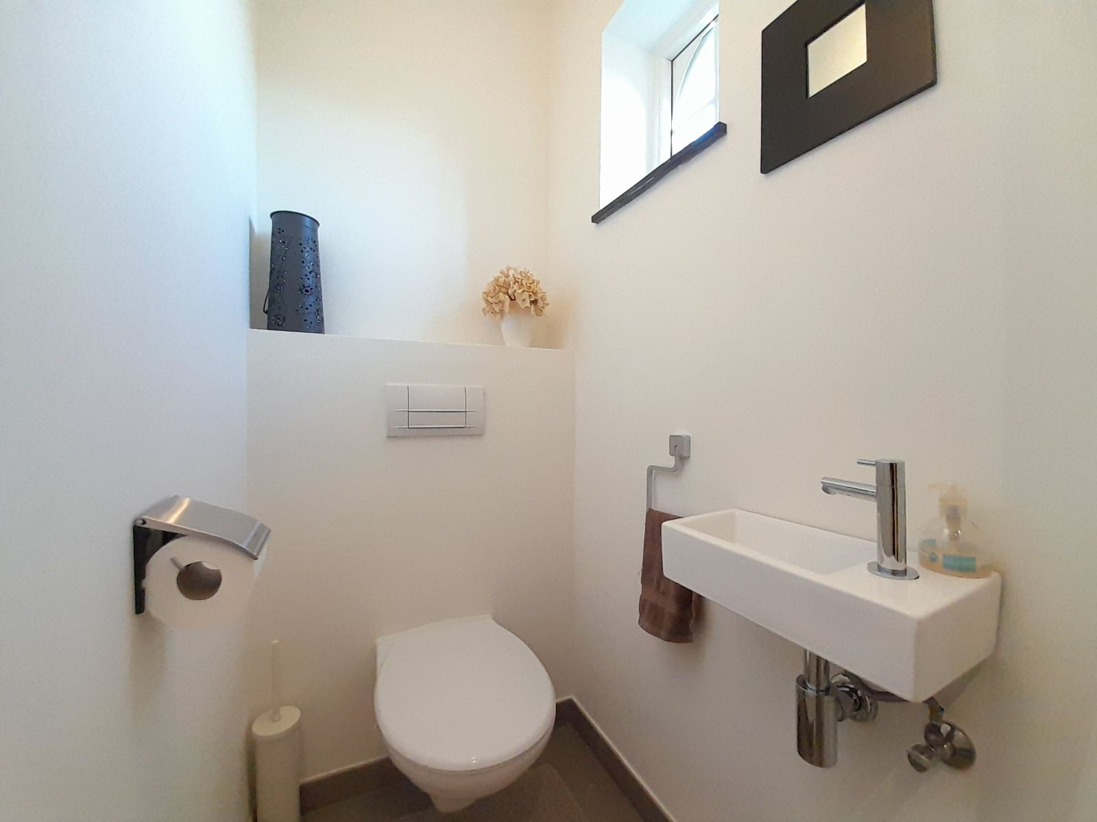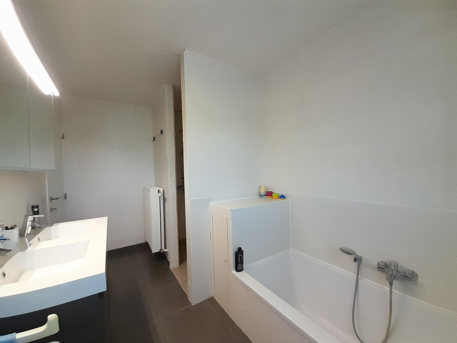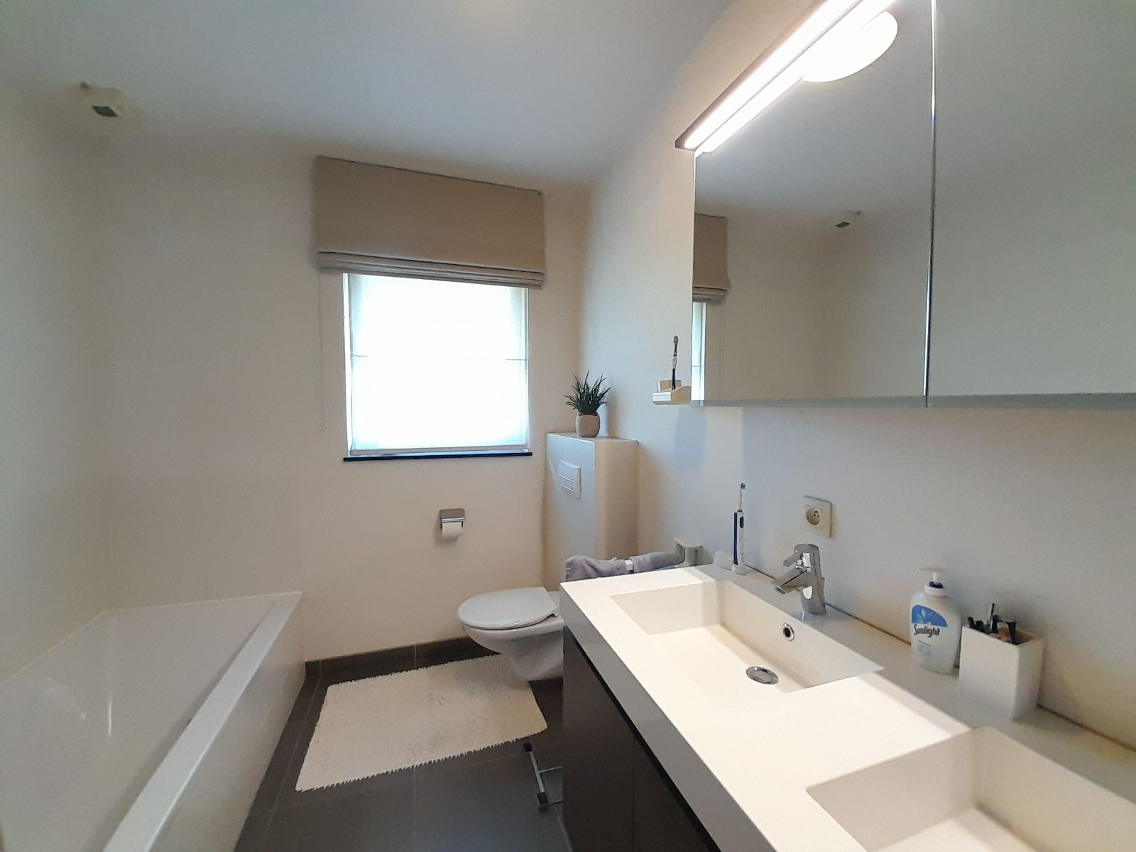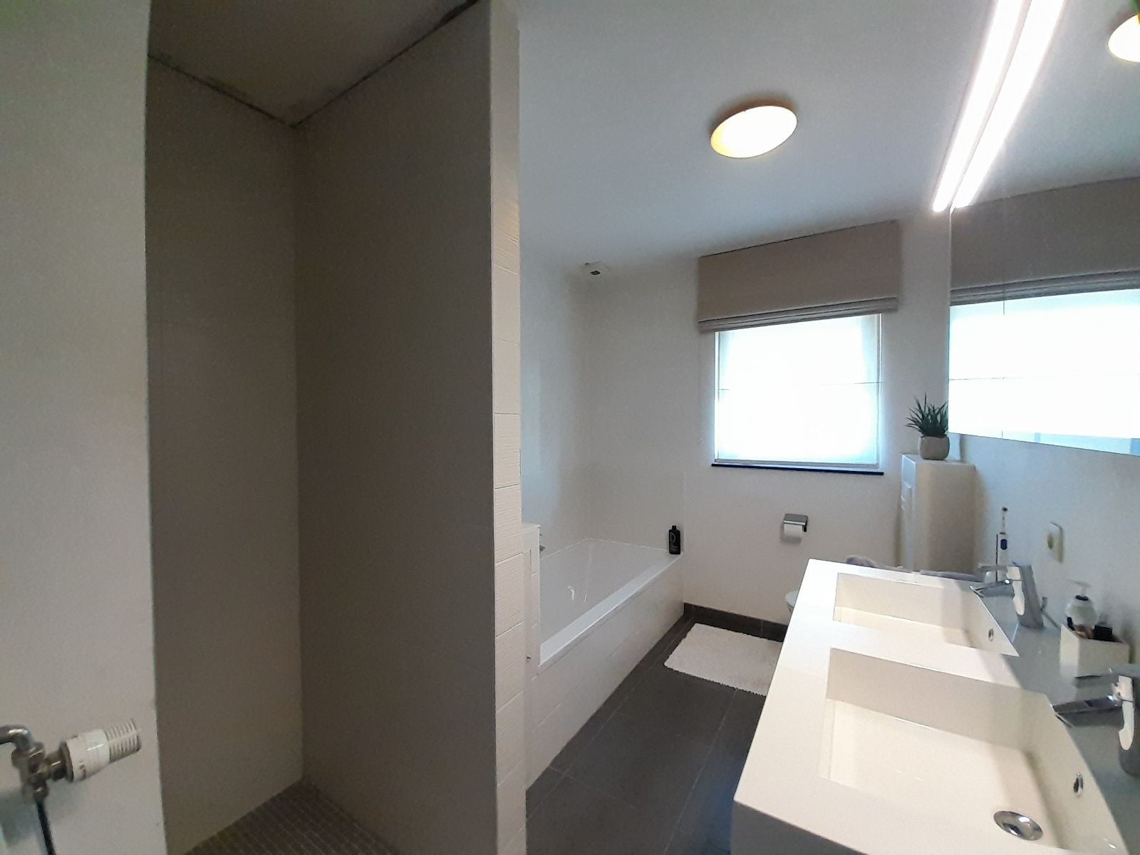 - Badkamer met ligbad, inloopdouche, toilet en dubbele wastafel