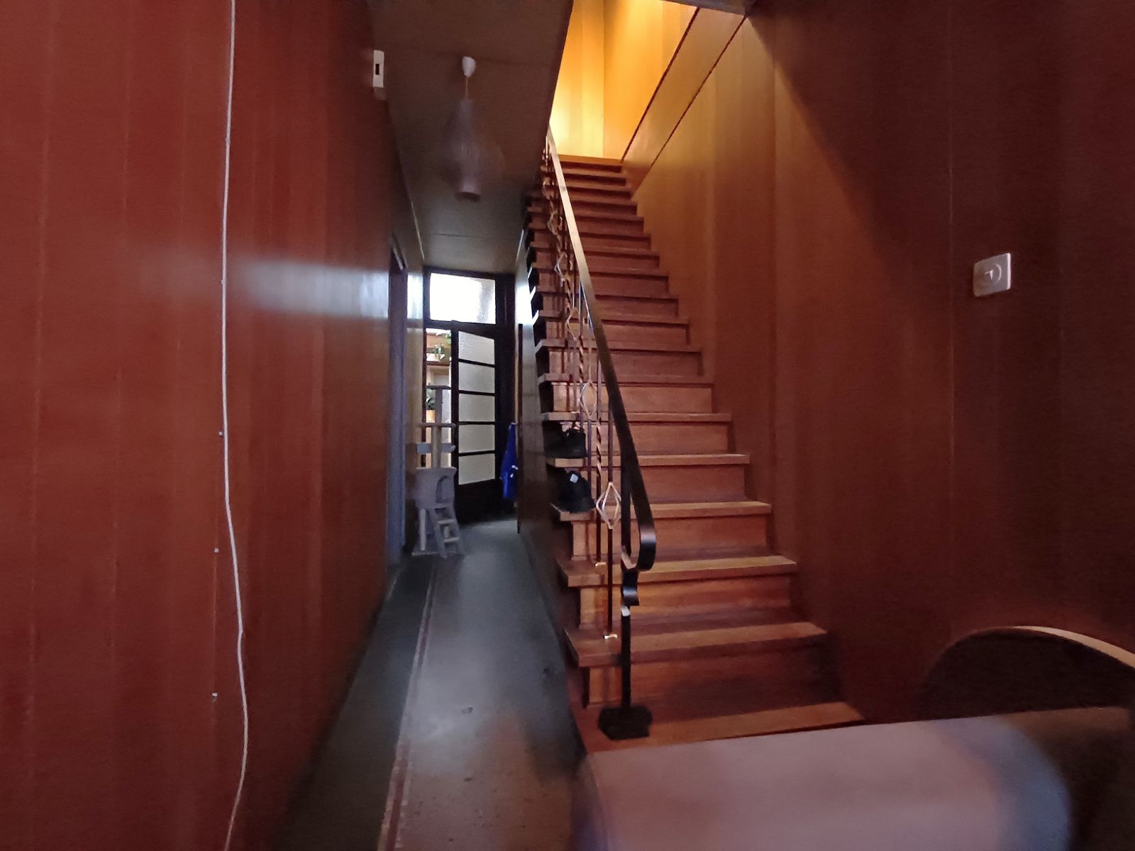Via de inkomhal komt u terecht in de lichte leef- en eetruimte, waar de hoge plafonds het woonvolume extra in de verf zetten. Aansluitend bevinden zich de keuken en een pandgang die toegang biedt tot het apart toilet, de badkamer, twee praktische bergruimtes én de grote tuin.