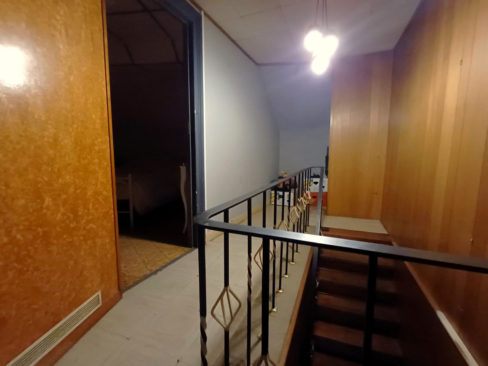 Op de eerste verdieping bevinden zich twee comfortabele slaapkamers, opnieuw met een aangenaam ruimtegevoel dankzij de hoge plafonds. De zolder, bereikbaar via een luik vanuit de dienstenhal, biedt bijkomende opbergmogelijkheden.