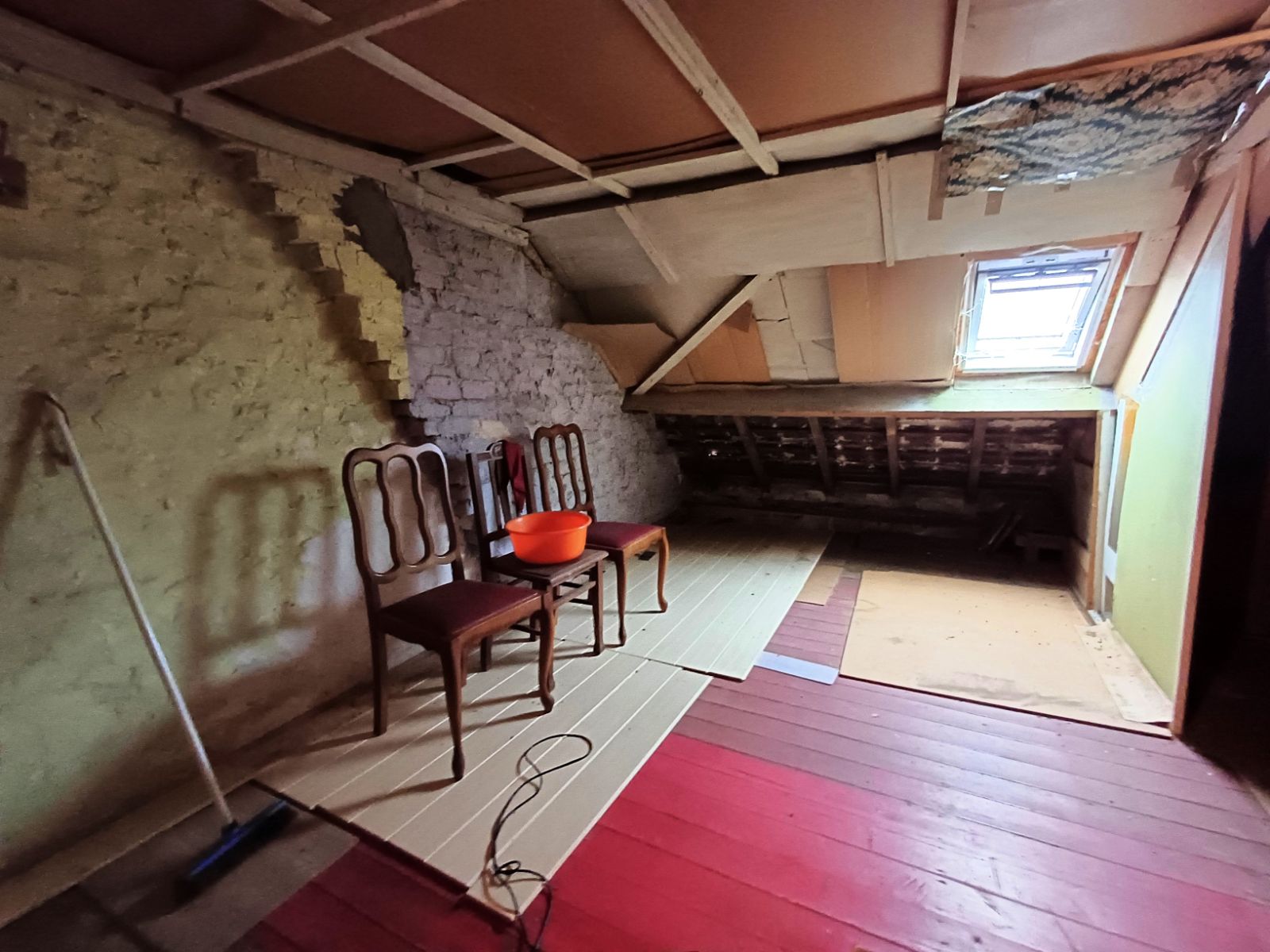 Op de eerste verdieping zijn twee slaapkamers en een nachthal terug te vinden. Via slaapkamer 2 bereikt u de zolderverdieping, verdeeld in drie aparte delen en bereikbaar via een vaste trap. Deze zolder biedt de mogelijkheid om het aantal kamers te vergroten.