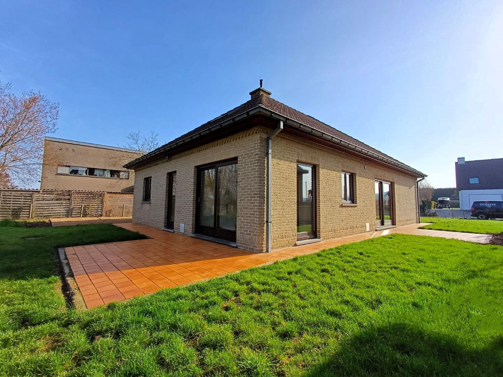 De woning heeft een praktische indeling: u betreedt het pand via de inkomhal, waarna u terechtkomt in de ruime leef- en eetkamer. Aansluitend vindt u de volledig uitgeruste keuken met berging, de inpandige garage, badkamer, apart toilet en de 2 slaapkamers. Alle lokalen bevinden zich op het gelijkvloers, wat extra comfort en toegankelijkheid biedt.