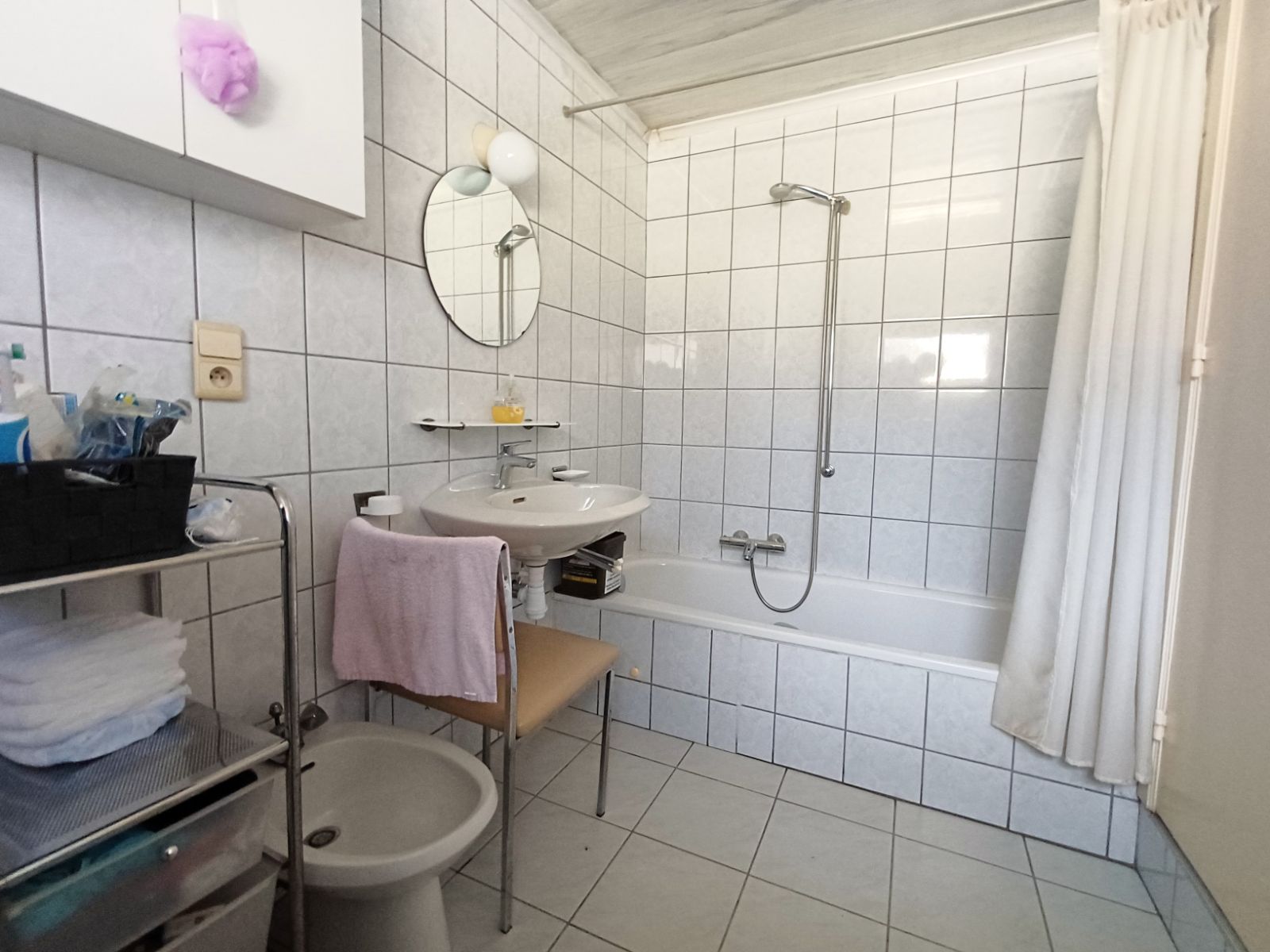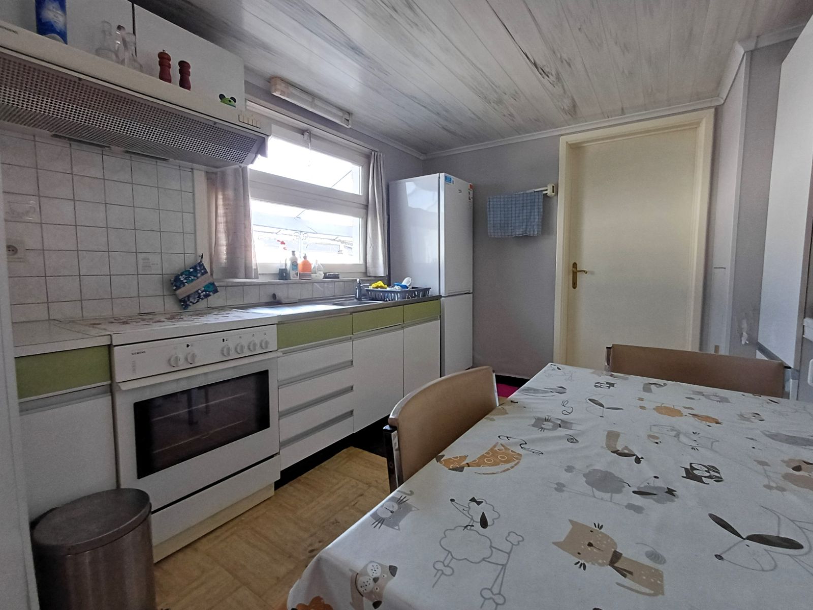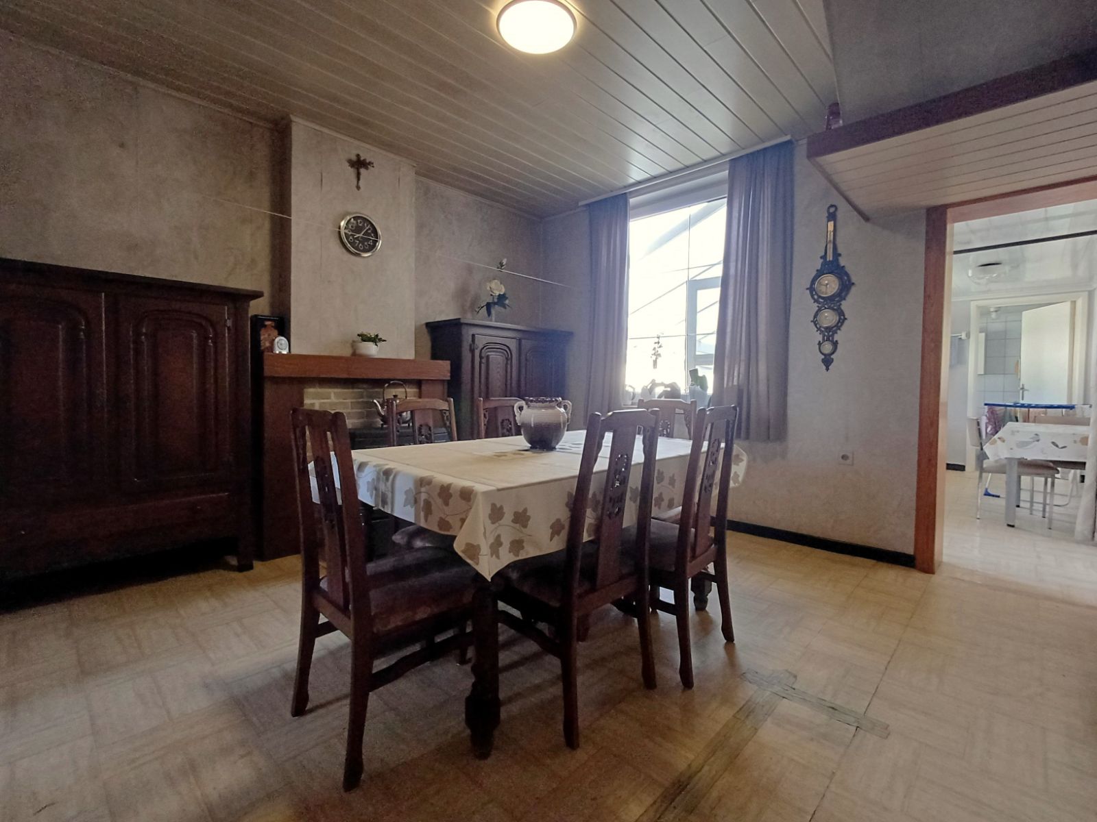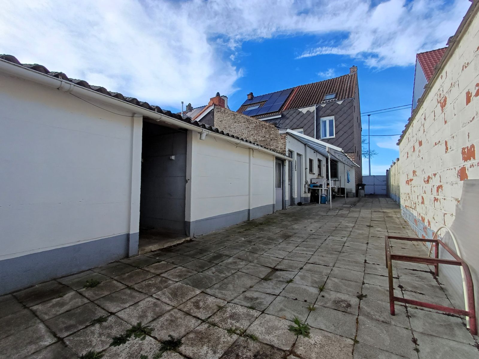 De woning beschikt over een praktische zijdoorgang van ca. 1m90 breed, die zorgt voor een vlotte verbinding naar de straat en de binnenkoer , ideaal voor fietsen, tuinmateriaal of het eenvoudig bereiken van de buitenruimte zonder door de woning te moeten.