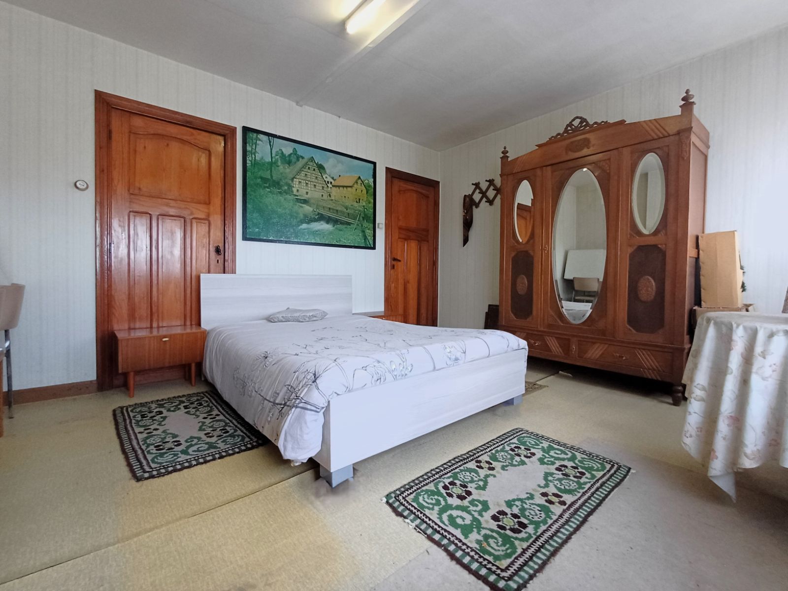 De eerste verdieping omvat twee slaapkamers, die zowel afzonderlijk toegankelijk zijn als onderling verbonden via een tussendeur. Via een vaste trap bereikt u de zolderverdieping, die uitstekend potentieel biedt voor het creëren van een extra slaapkamer, bureau of hobbyruimte.