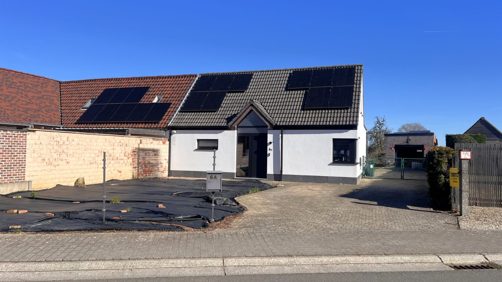 Extra troef is de doorlopende oprit die leidt naar de ruime en hoge garage van circa 49 m². Deze biedt tal van mogelijkheden (opslag, werkruimte, hobbyruimte…). De voortuin dient nog heraangelegd te worden, wat u de kans geeft deze volledig naar eigen smaak in te richten.
