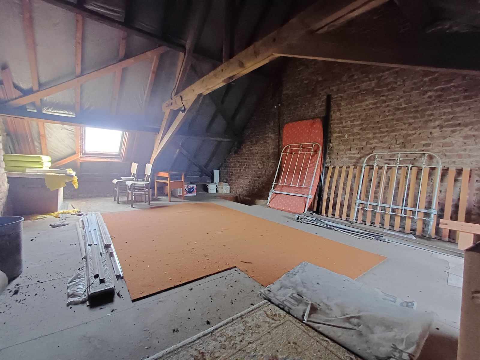 De eerste verdieping omvat twee slaapkamers, die zowel afzonderlijk toegankelijk zijn als onderling verbonden via een tussendeur. Via een vaste trap bereikt u de zolderverdieping, die uitstekend potentieel biedt voor het creëren van een extra slaapkamer, bureau of hobbyruimte.