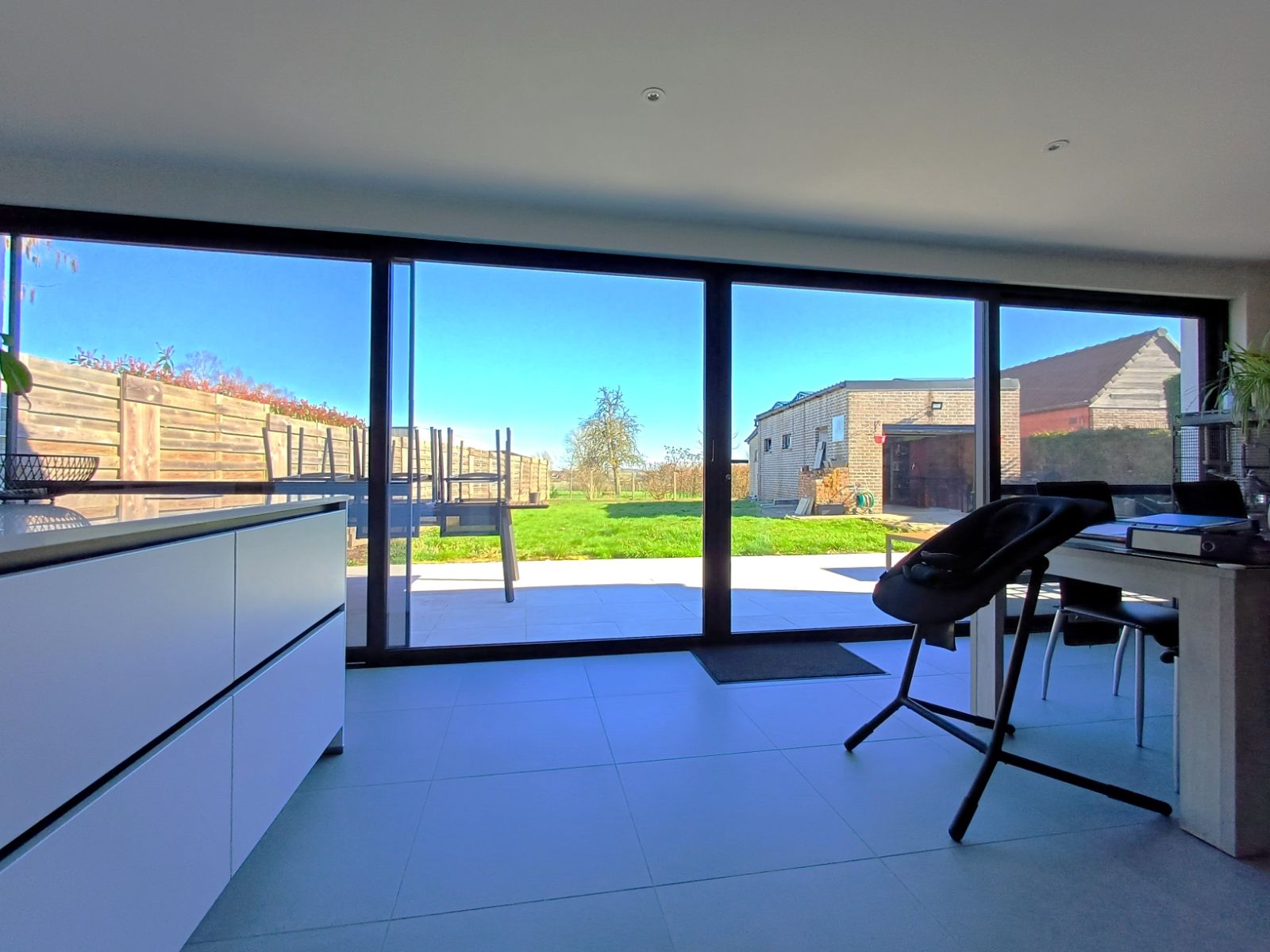 *De ingebouwde kasten in het bureel, de laadpaal en de pelletkachel maken geen onderdeel uit van deze verkoop!