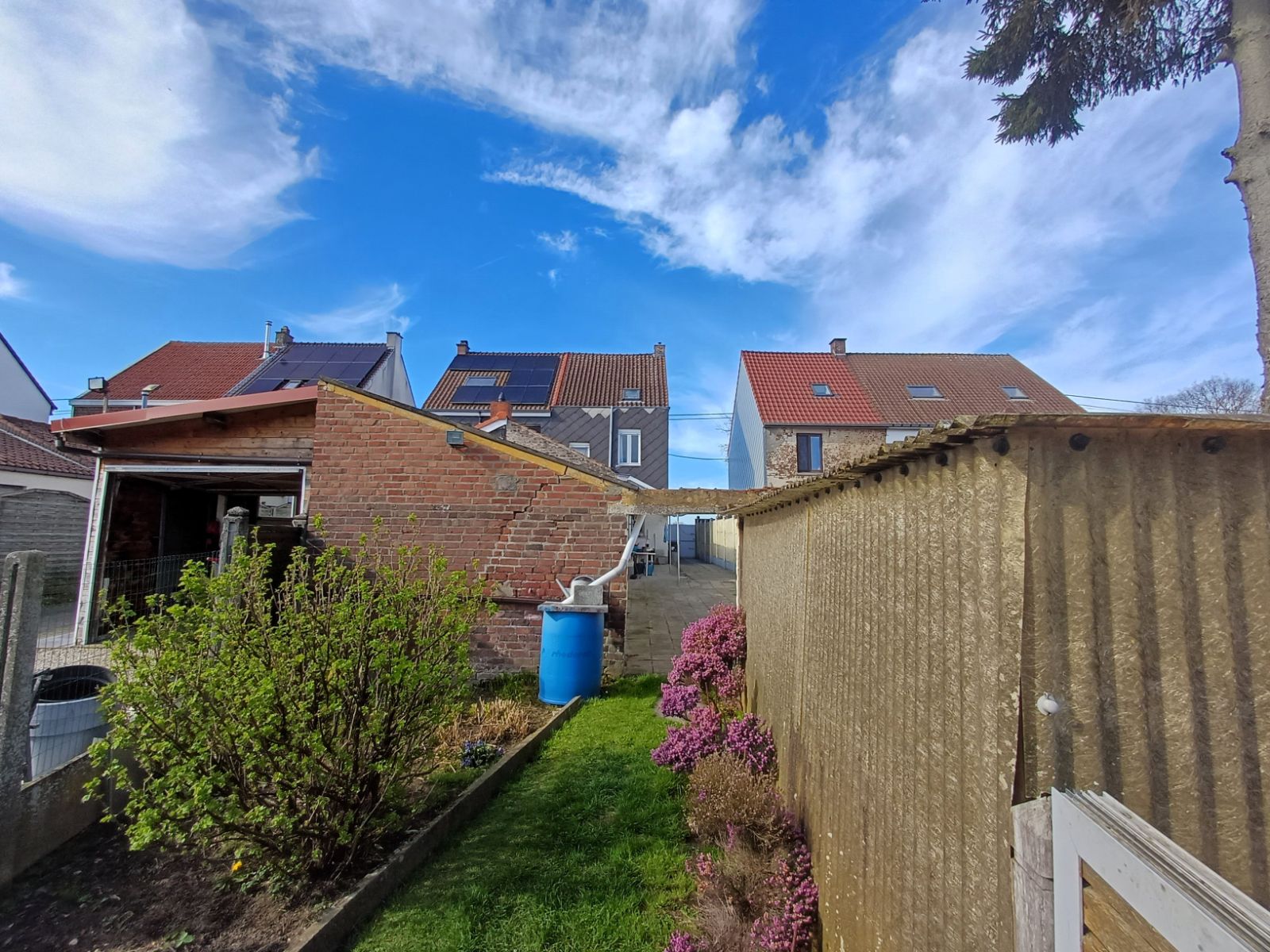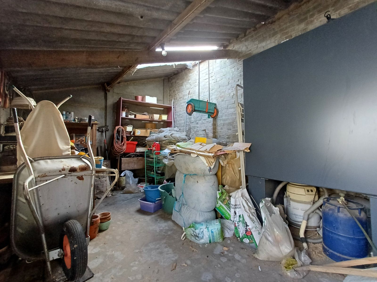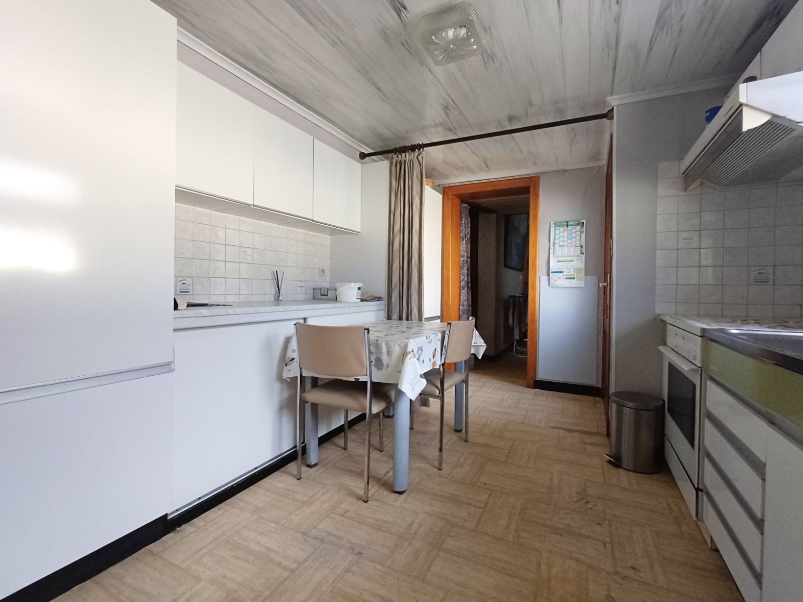De woning beschikt over een praktische zijdoorgang van ca. 1m90 breed, die zorgt voor een vlotte verbinding naar de straat en de binnenkoer , ideaal voor fietsen, tuinmateriaal of het eenvoudig bereiken van de buitenruimte zonder door de woning te moeten.