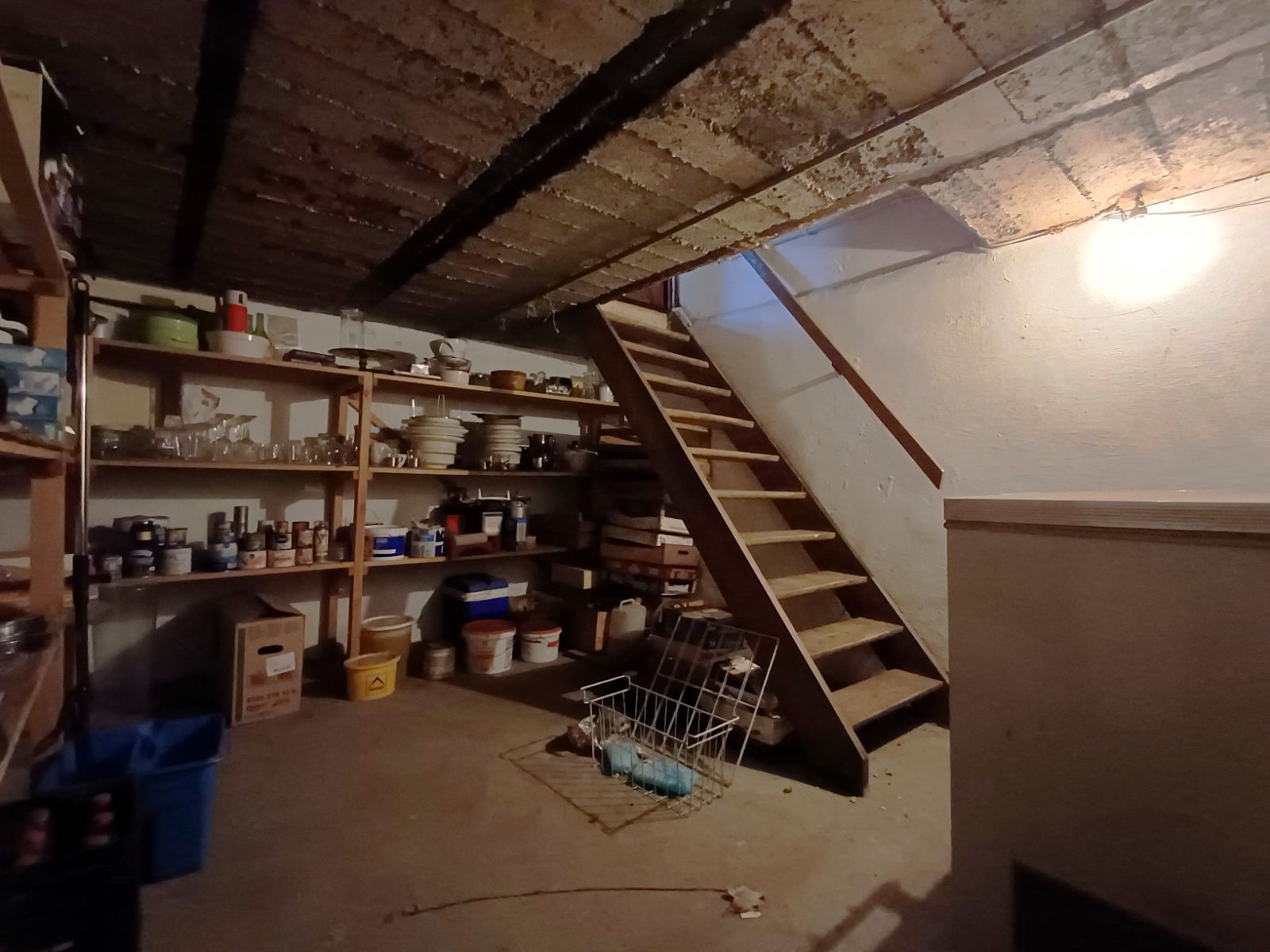 Op het gelijkvloers komt u binnen via de inkomhal met toegang tot de leefruimte, eetruimte en de trap naar de eerste verdieping. De leefruimte is voorzien van een gezellige houtkachel en sluit aan op de eetruimte, die uitgerust is met een mazoutkachel. Vanuit de eetruimte is er toegang tot de ruime en droge kelder, opgedeeld in twee afzonderlijke ruimtes, evenals tot de keuken. De keuken vormt de verbinding naar de badkamer, de eetruimte en de buitenkoer.