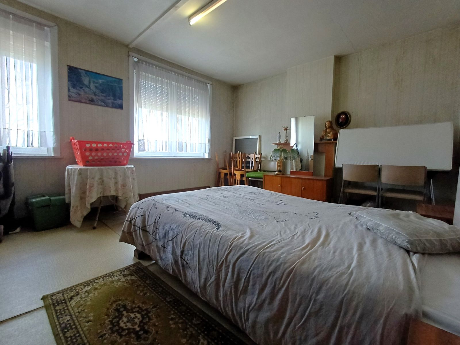 De eerste verdieping omvat twee slaapkamers, die zowel afzonderlijk toegankelijk zijn als onderling verbonden via een tussendeur. Via een vaste trap bereikt u de zolderverdieping, die uitstekend potentieel biedt voor het creëren van een extra slaapkamer, bureau of hobbyruimte.