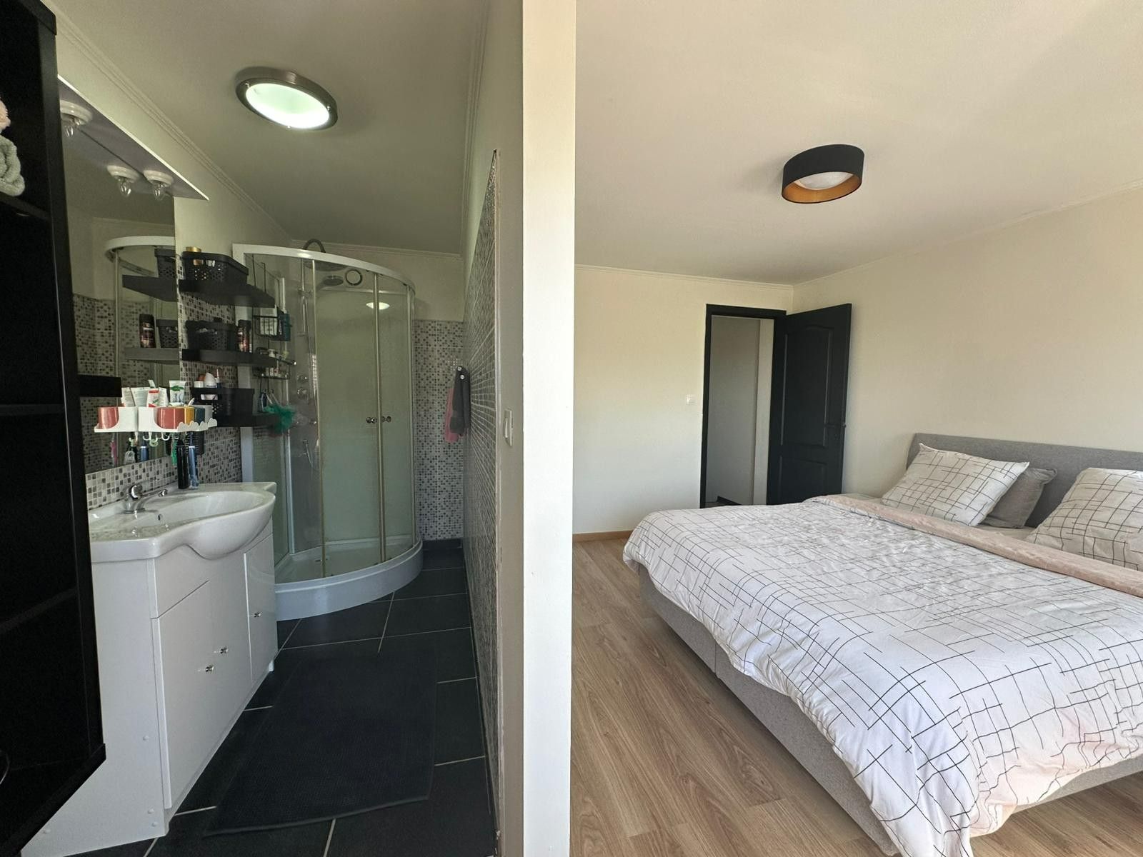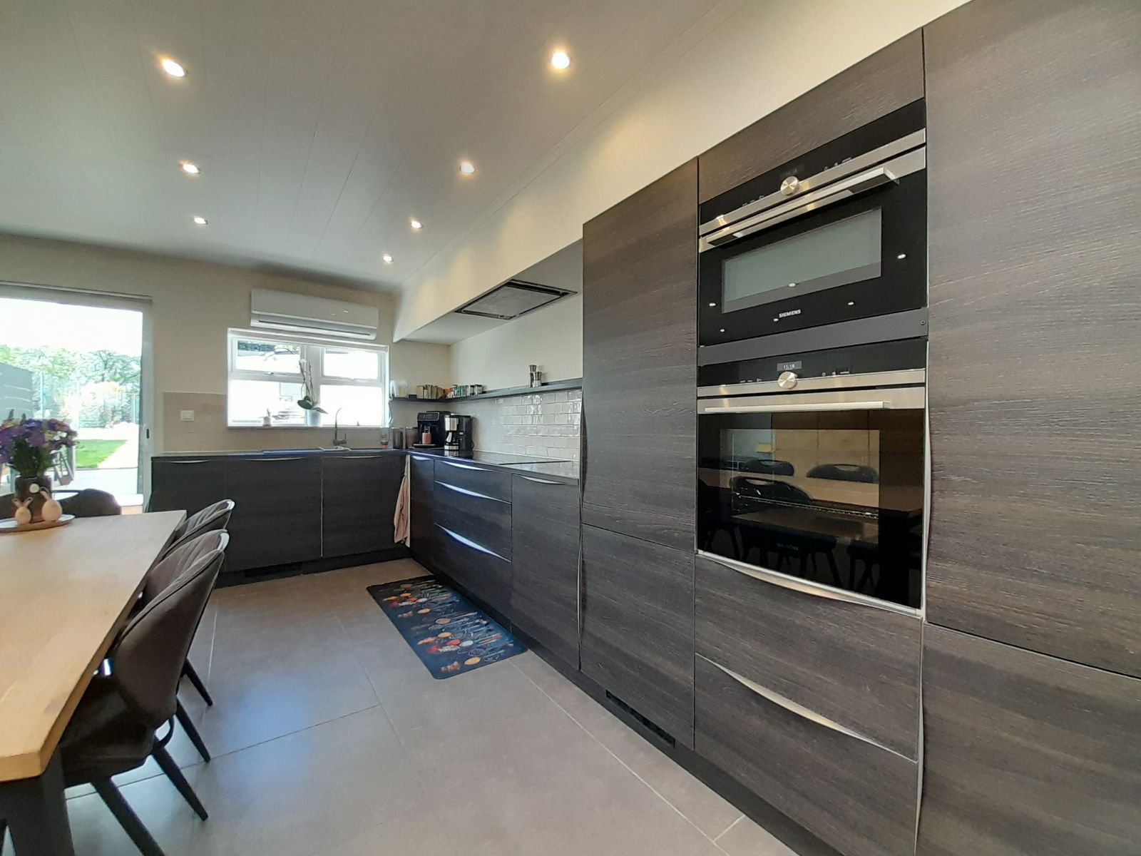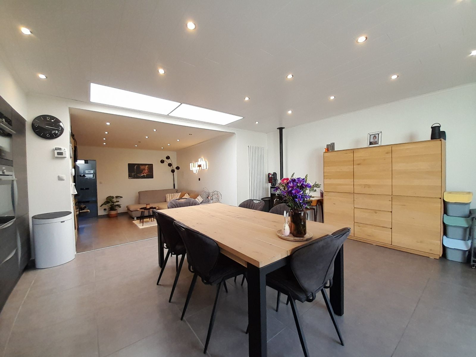 La maison dispose d’un espace de vie ouvert et lumineux, en parfaite harmonie avec une cuisine entièrement équipée avec coin repas. Depuis la cuisine, vous profitez d’une belle vue sur la terrasse et le jardin, créant une agréable continuité entre intérieur et extérieur. Atout supplémentaire : une installation de climatisation réversible (chaud/froid) ainsi qu’un poêle à pellets convivial.
