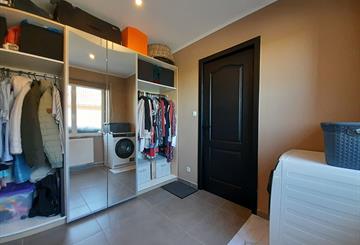 En entrant dans la maison, vous accédez au hall d’entrée équipé de placards intégrés pratiques offrant de nombreux espaces de rangement. Celui-ci mène à une pièce polyvalente pouvant servir de buanderie ou de bureau. Un WC invités est également présent au rez-de-chaussée.